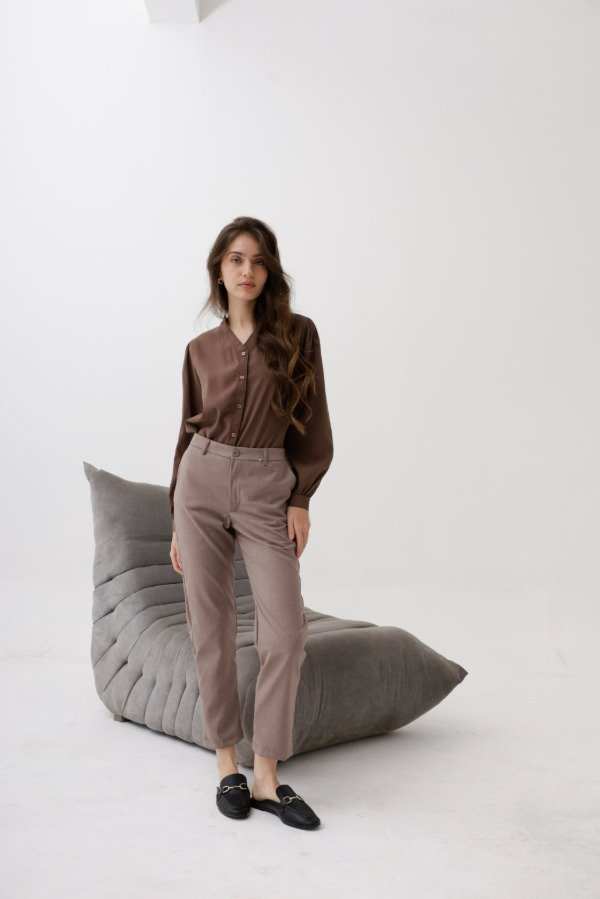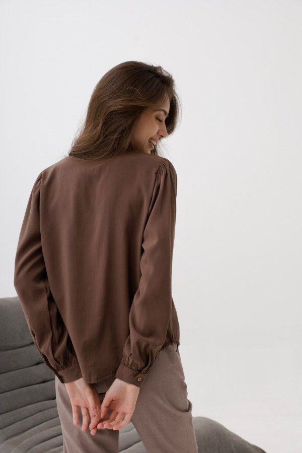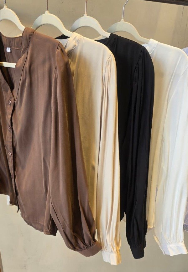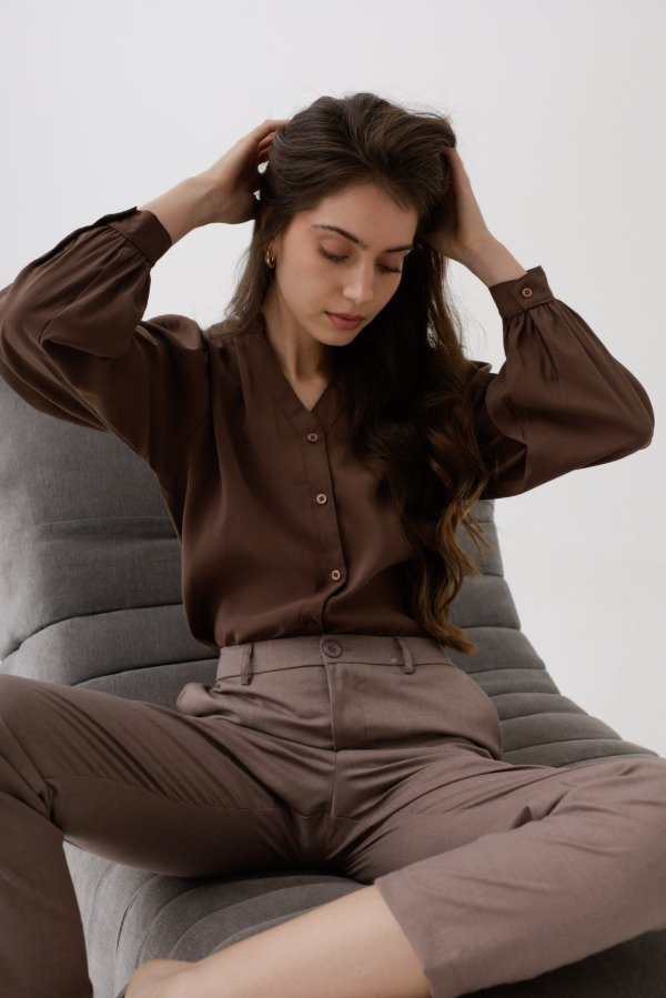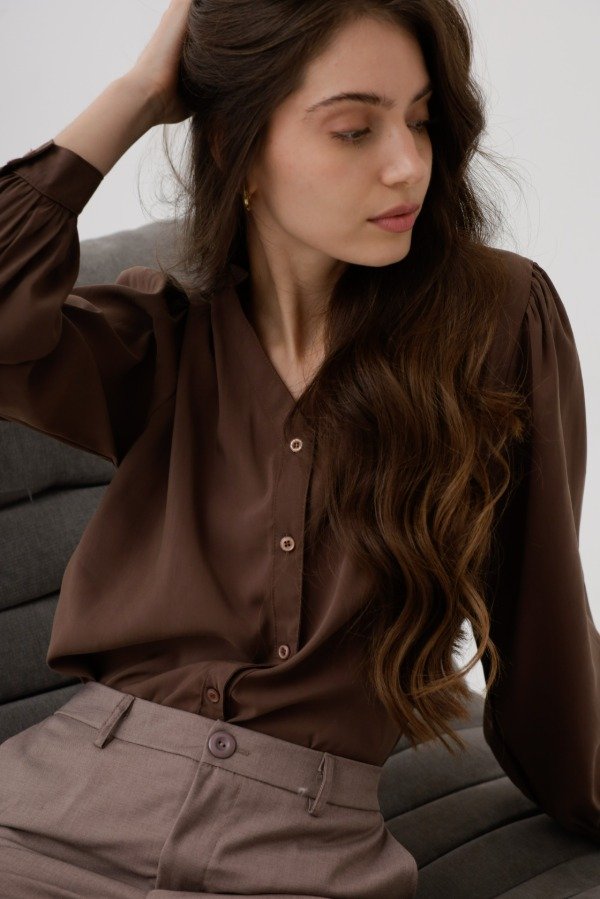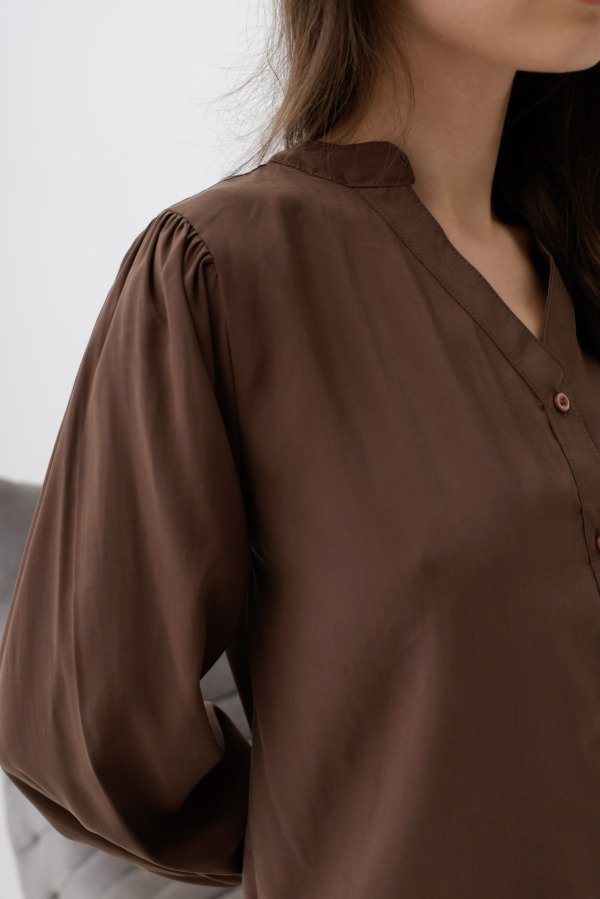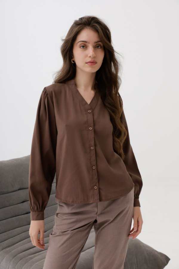 Camisa de seda gamuzada,corte clásico, cuello mao.