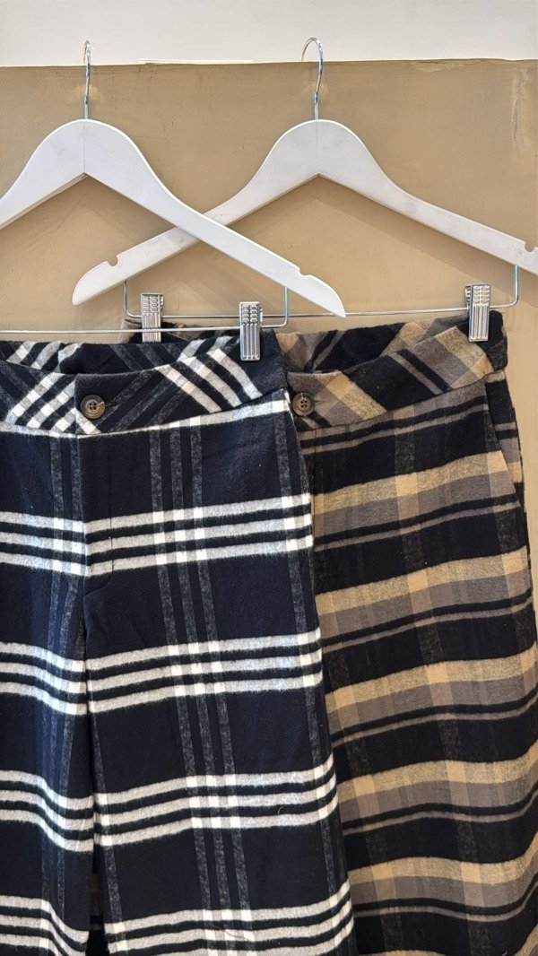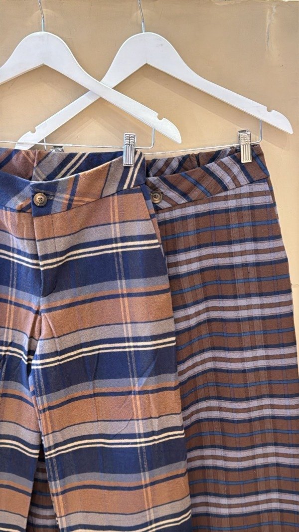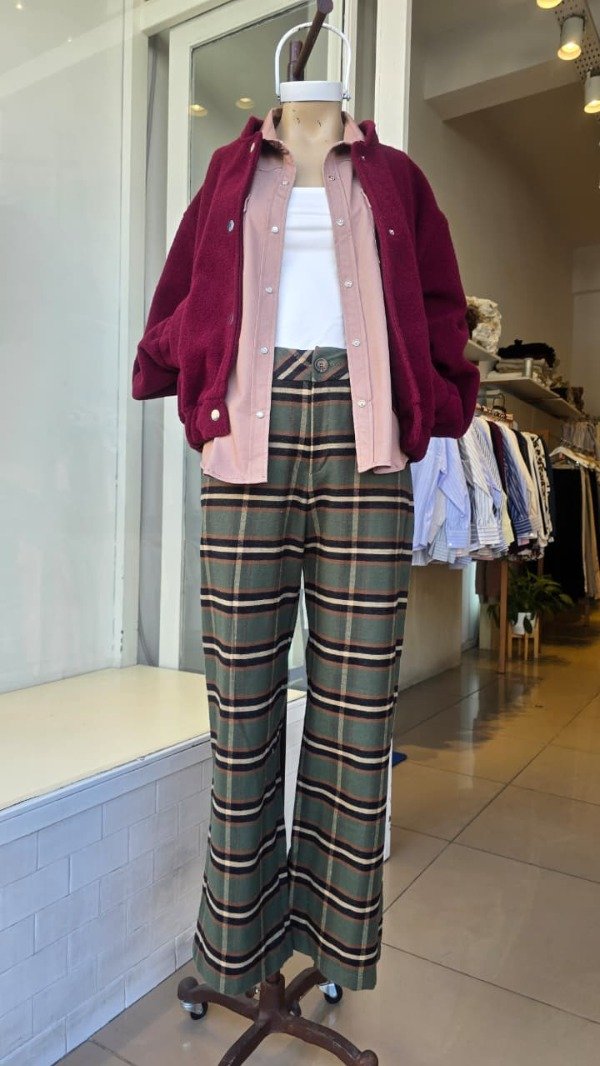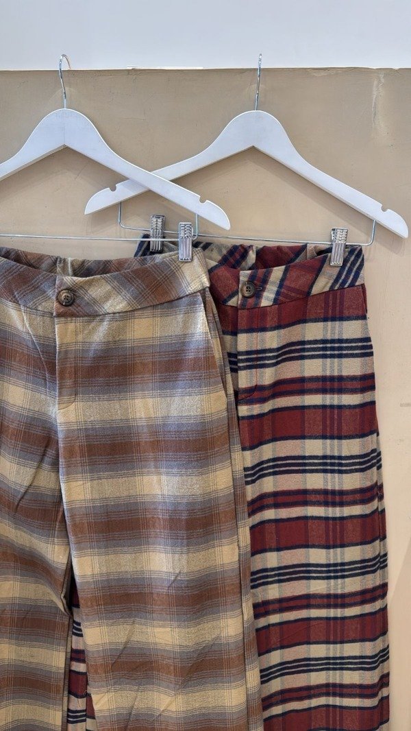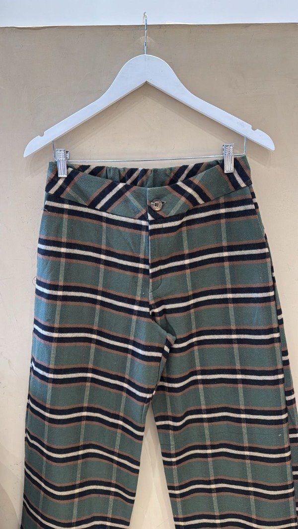 Pantalón recto en viyela súper persada escocesa, con elástico en cintura, y bolsillos delanteros.