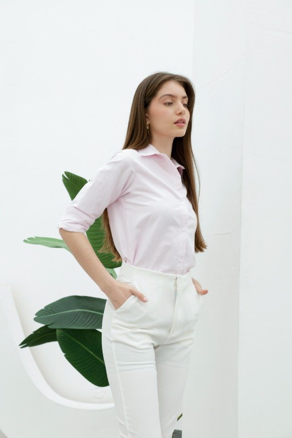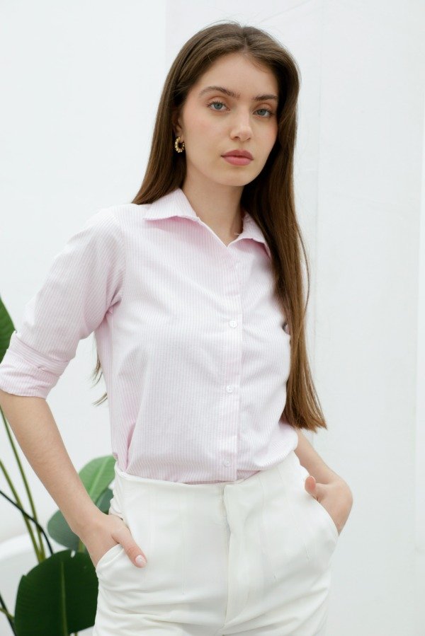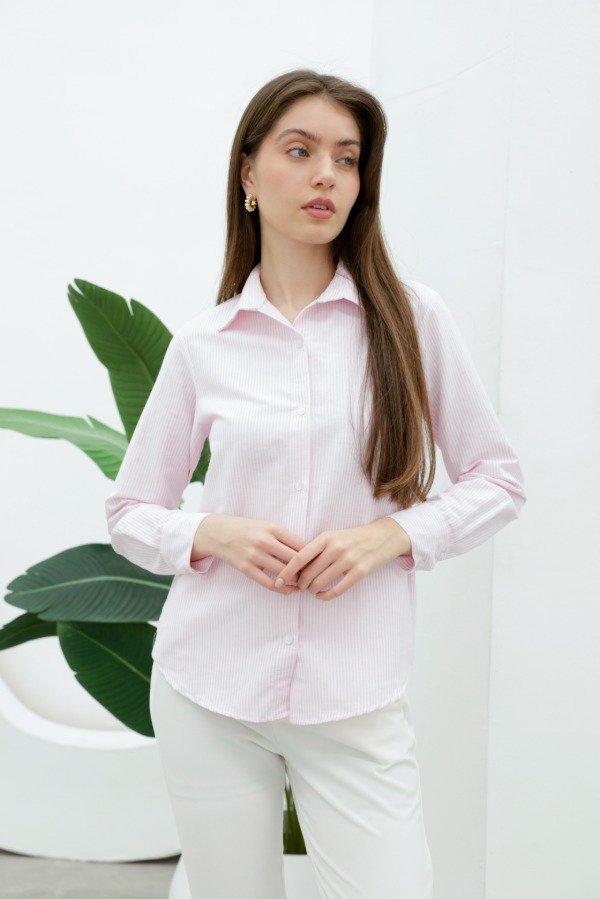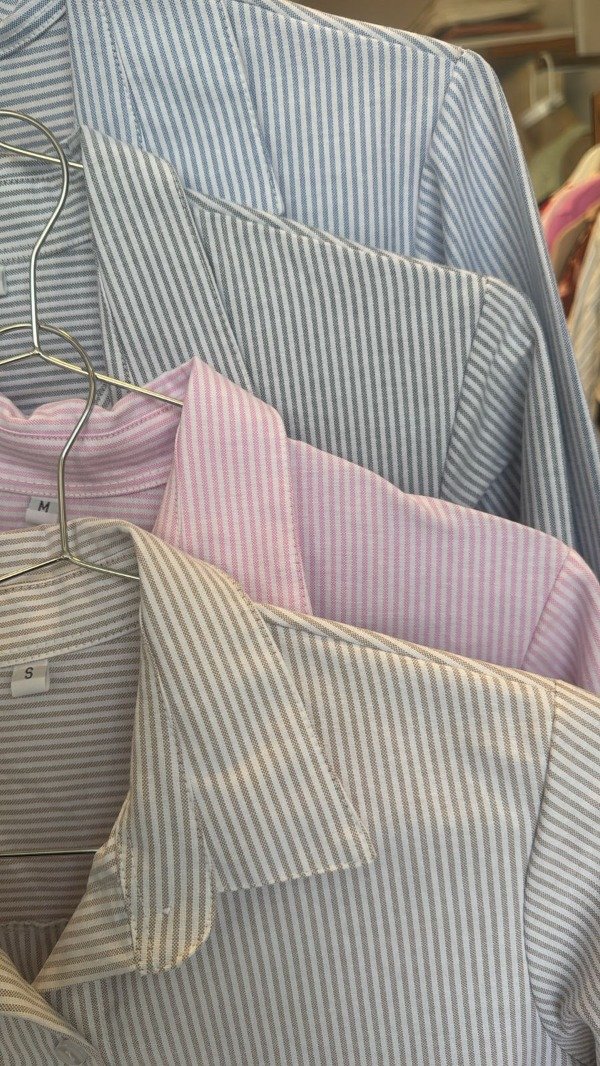Camisa manga larga en algodón OXFORD (un tramado premium) rayado con corte clásico, relajado sin pinzas.