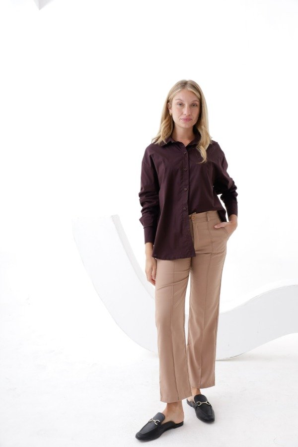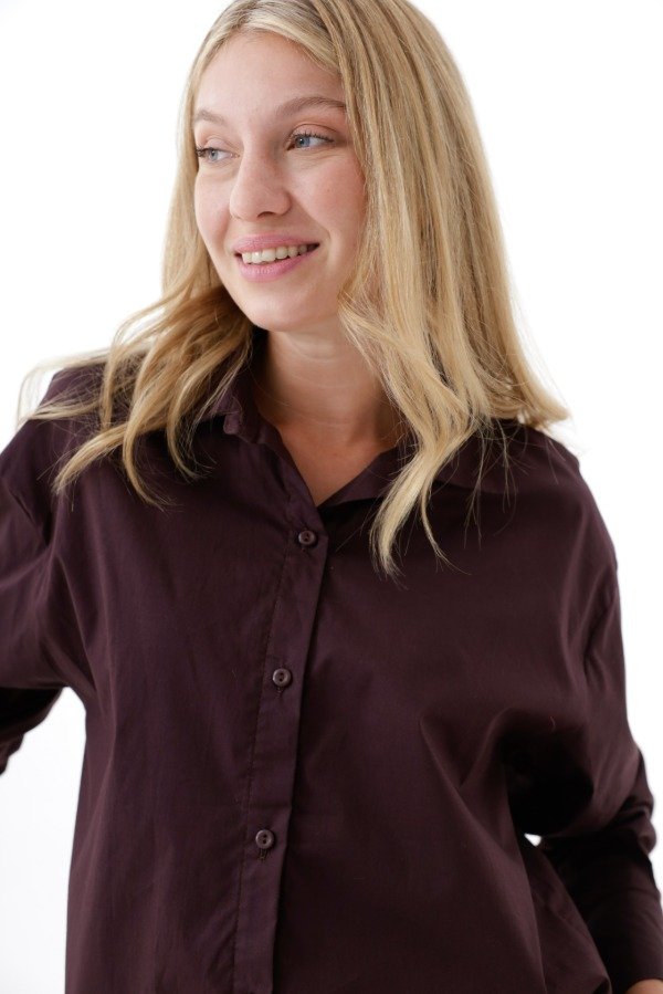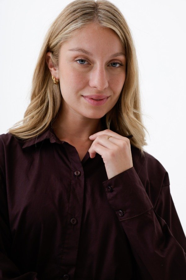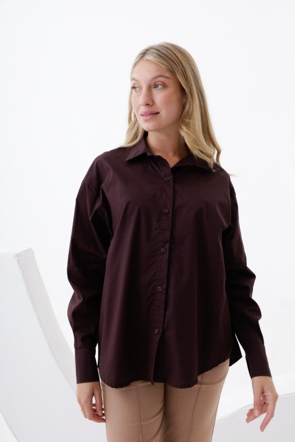 Camisa lisa oversize en cotton poplín con un poquito de spandex.