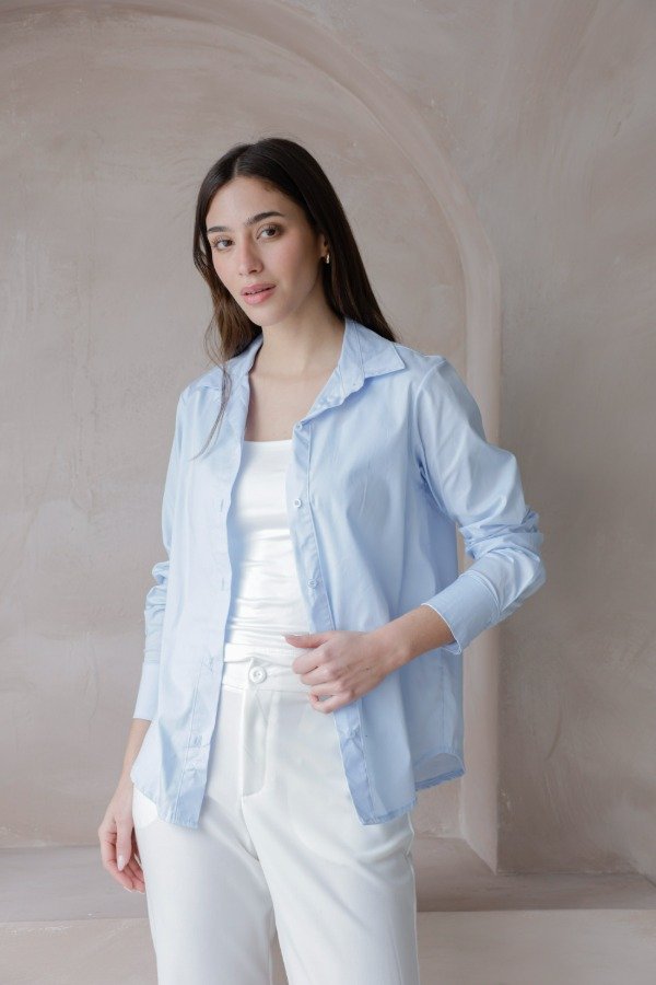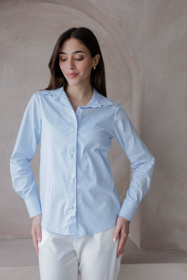 Camisa de algodón poplín manga largas en corte recto. Perfectas para abajo de los sweaters y chalecos.