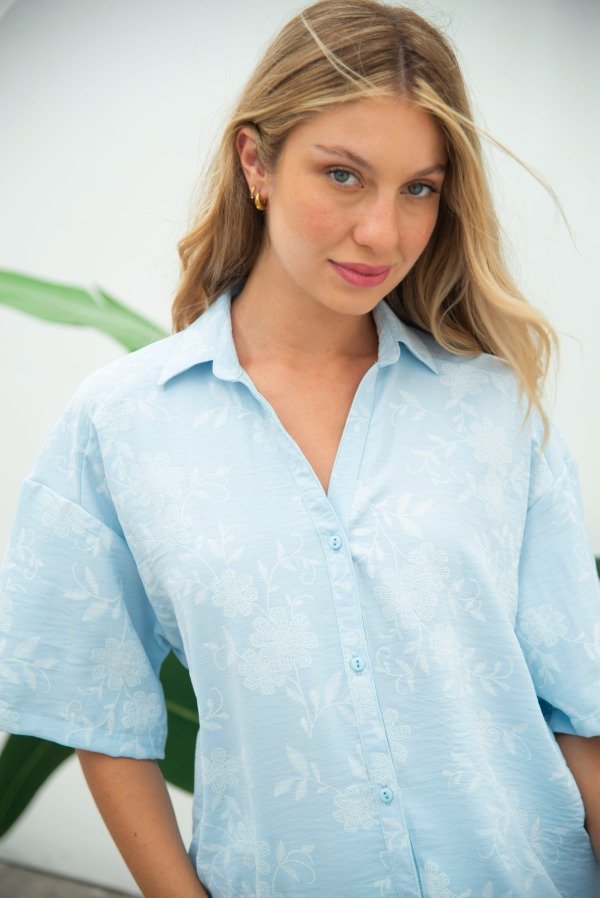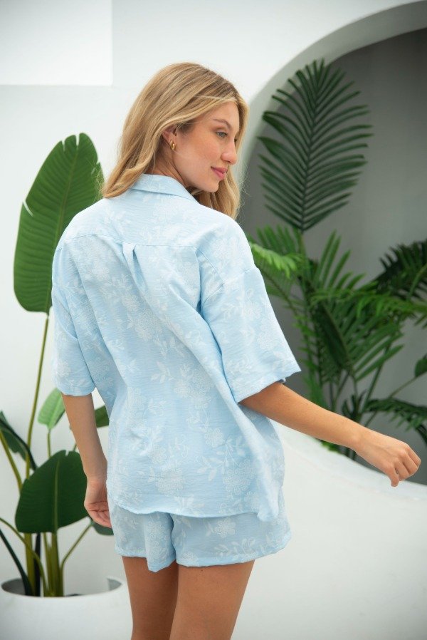 Camisa oversize manga corta en cey puffing con escote abierto en V. Hace conjunto con el short Gardenia