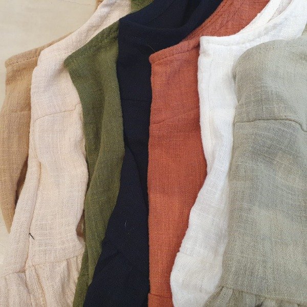 Musculosa en lino de algodón con volados en breteles y en cintura