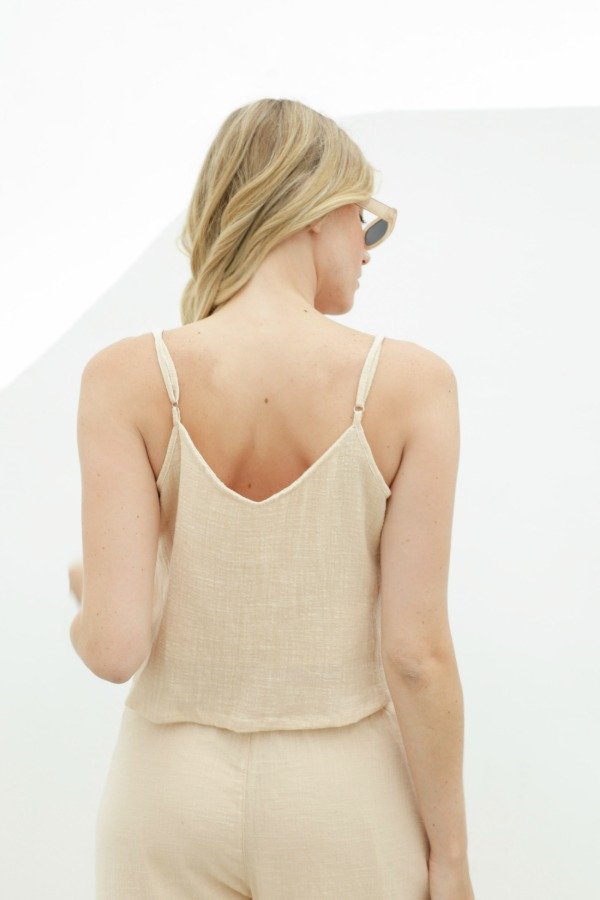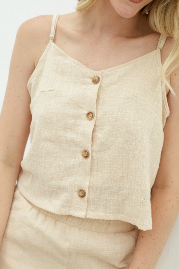 Musculosa en lino de algodón abotonado con breteles regulables.