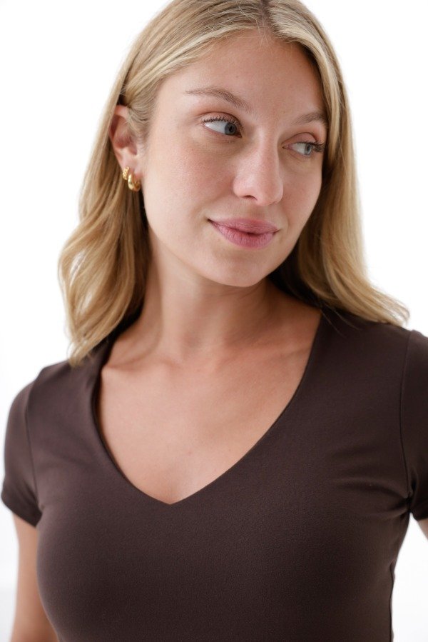 Remera manga corta cuello V, doble capa frontal en modal soft.
