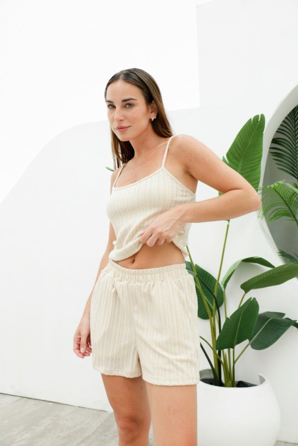 Short de tela tejida con cintura con elástico y bolsillos. Tienen forrería. Hace conjunto con el top Geranio y con la musculosa bote Geranio.