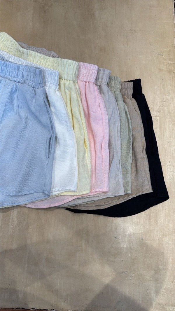 Short evasé en símil bambula, con elástico en la cintura y bolsillos. Hace conjunto con la blusa jazmín. Los colores claros vienen con forrería.