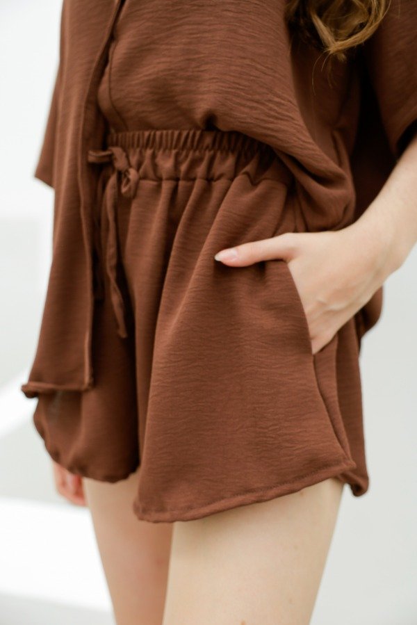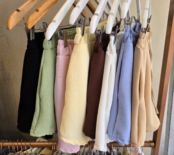 Short evasé en cey lino liso, con elástico en la cintura y bolsillos. Hace conjunto con la camisa Sonia lisa. Los colores claros vienen con forrería.